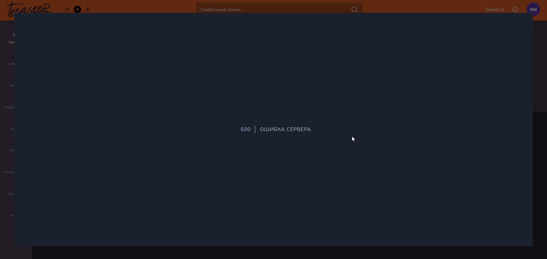 При регистрации аккаунта показывает огромное пустое окно с ошибкой 500