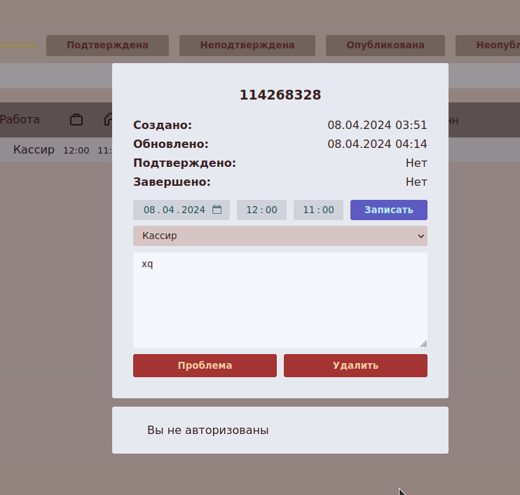 При редактировании заявки от лица магазина и нажатии кнопки Enter высвечивает ошибку Вы не авторизованы