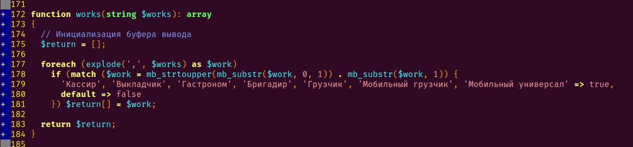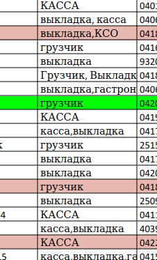 Выгрузить из документа с сотрудниками их вид работы. Там он немного другой, поэтому надо разработать гибкую систему. Виды работы там разделены запятой