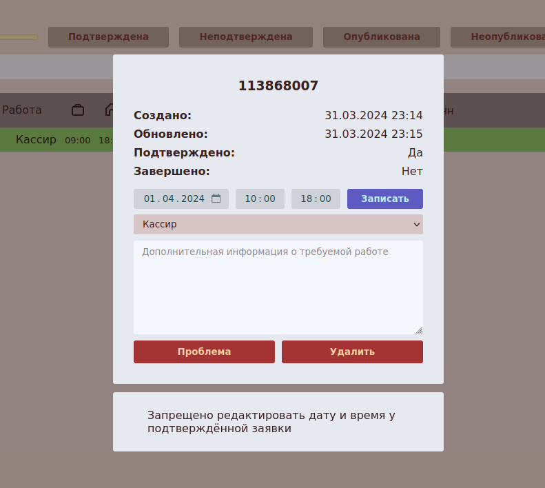 Магазин не может редактировать заявки которые подтвердил оператор (зелёным цветом)