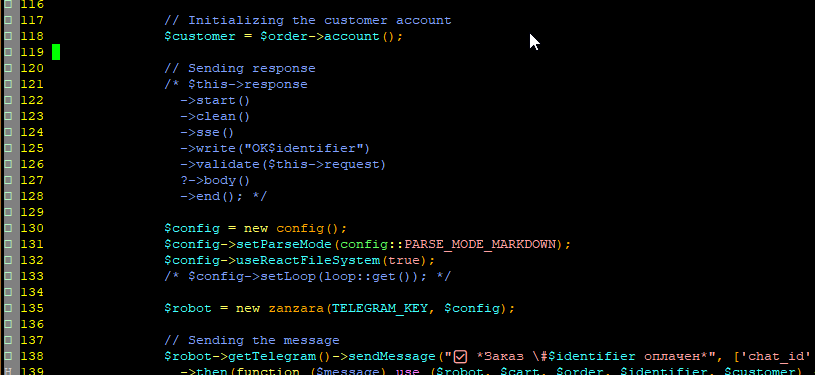 Ends the process, instead of sending to the output buffer