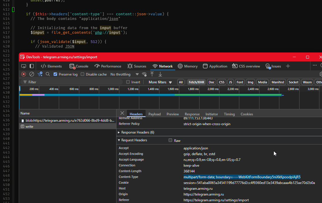 Content-Typeheader:string(68) "multipart/form-data; boundary=----WebKitFormBoundary5niXkKpoodpIAjR5"so we need instead of